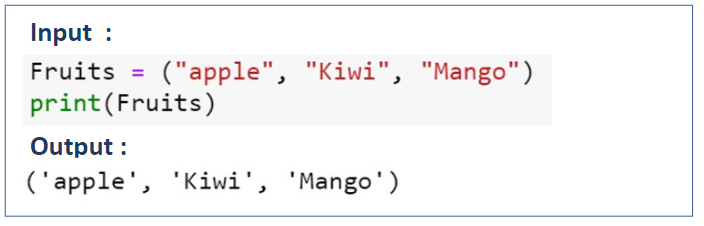 A tuple is an ordered collection of python objects, much like a list. The sequence of values stored in a tuple can be any type and they are indexed by integers, which allow the duplicate members. Tuples are used to write and protect the data and are usually faster than lists.