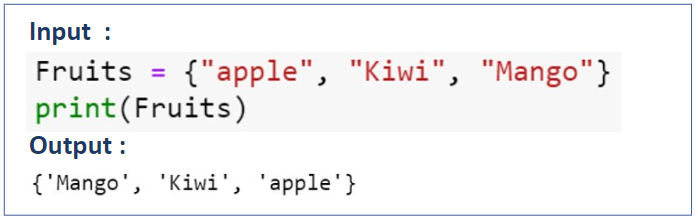 Set is an unorderable collection of data types that are iterable, mutable, and have unique elements. The advantage of using a set is that it has a method for checking whether a specific element is contained in the set and is defined by curly braces with unique values.