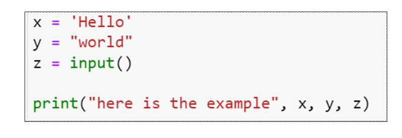 We declare the string value inside the single quotes or double-quotes. Example ‘Hello’ or “Hello”.