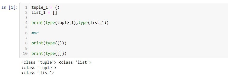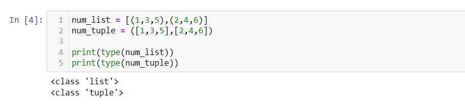 - We can create a tuple or list with the same data types or a mixture of different data types.