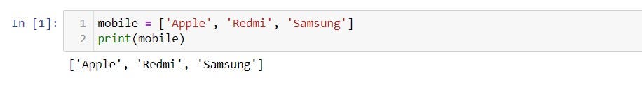 We don’t have arrays in Python; instead, we have a List data type. The list is dynamic. So that we can modify it (Mutable), it is denoted by square brackets “[]”. It is a container that contains different types of objects and is used to iterate objects.
