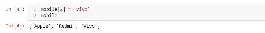 We can overwrite/reassign an item in the list,