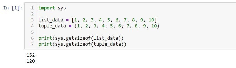 - A list consumes more memory, whereas a tuple consumes less.