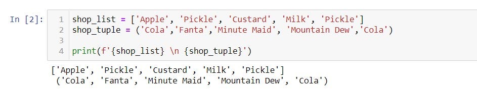 - A list or tuple can contain repeated values or duplicate items.