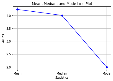 plt.title(‘Mean, Median, and Mode Line Plot’)